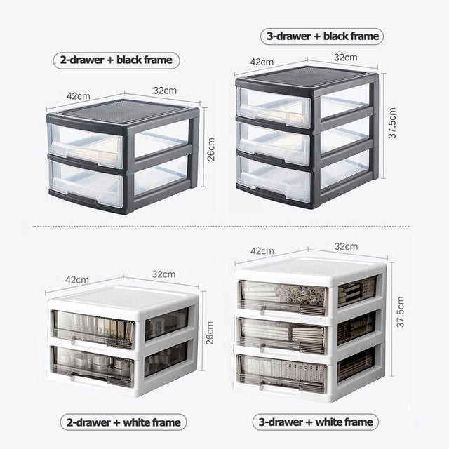 About this item Product details Moustache® Desktop Drawer Organizer, Plastic Don't allow clutter to hinder your creativity. Accommodates letter-size / A4 / A3, it's a great storage solution for any daily necessities from stationery documents. Features: Comes with a sheet of labels for classified labelling. Make your desktop tidy and organized for more productive. See-through drawers for visibility and items recognition Accommodates letter-size / A4 / A3 files Full extension drawers with stop prevent from falling out of the unit Built-in handle for easy pulling out and storing Made of durable waterproof PP plastic for easy cleaning More Options for your selected: ***Desktop 2-Drawer Organizer, Black" ***Desktop 2-Drawer Organizer, White" ***Desktop 3-Drawer Organizer, Black ***Desktop 3-Drawer Organizer, White Specifications Size (L x W x H): 32 x 42 x 38cm Accommodate Size: letter-size / A4 / A3 Built-in Handle: Yes Drawers: Full extension, Visible Materials: PP Plastic Packing Lists: 1 x Organizer, 1 x Sheet of Label, 1 x Organizer