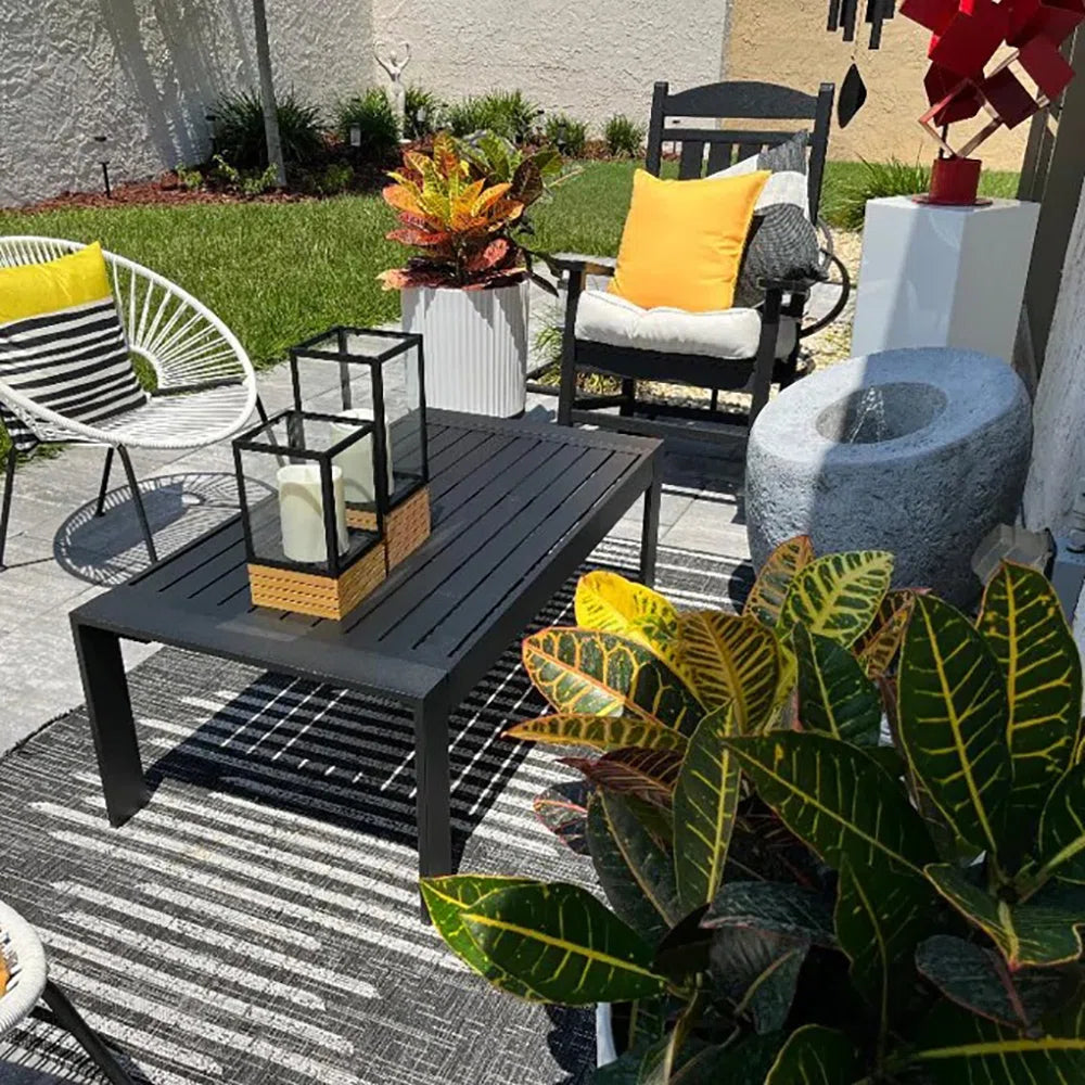 • Aluminum Frame: Outdoor Coffee Table is made of professional powder-coated aluminum so you can feel safe leaving this table outdoors no matter the season. The rust-proof aluminum frames are lightweight for easy handling and storage.