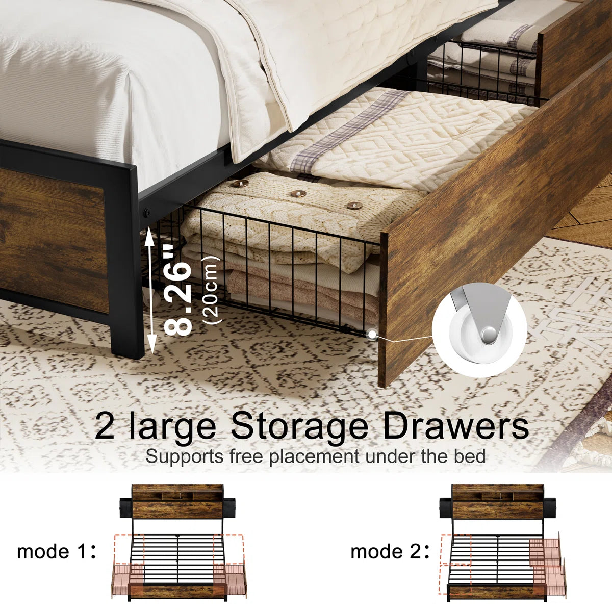 • Note: This bed frame only has 2 under-bed drawers, but those 2 under-bed drawers can be placed in any of the four locations under the bed, instead of including four drawers. Support free placement of these 2 under-bed drawers according to the position of the bed in the bedroom, whether your bed frame is against the wall or not.