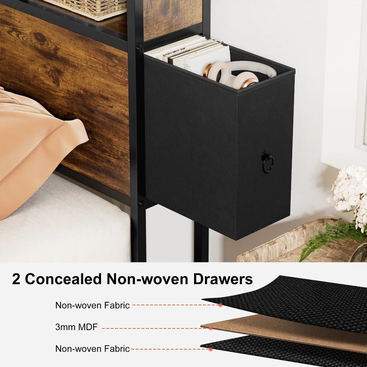 • Storage Headboard with 2 Bedside Drawers: The platform bed frame features a multifunctional storage headboard, which consists of an integrated bookcase headboard and 2 hidden drawers. The open shelves provide a convenient display space for books, décor, or personal items. 2 concealed drawers offer a clever and organized solution for stowing away essentials, keeping your bedroom clutter-free.
