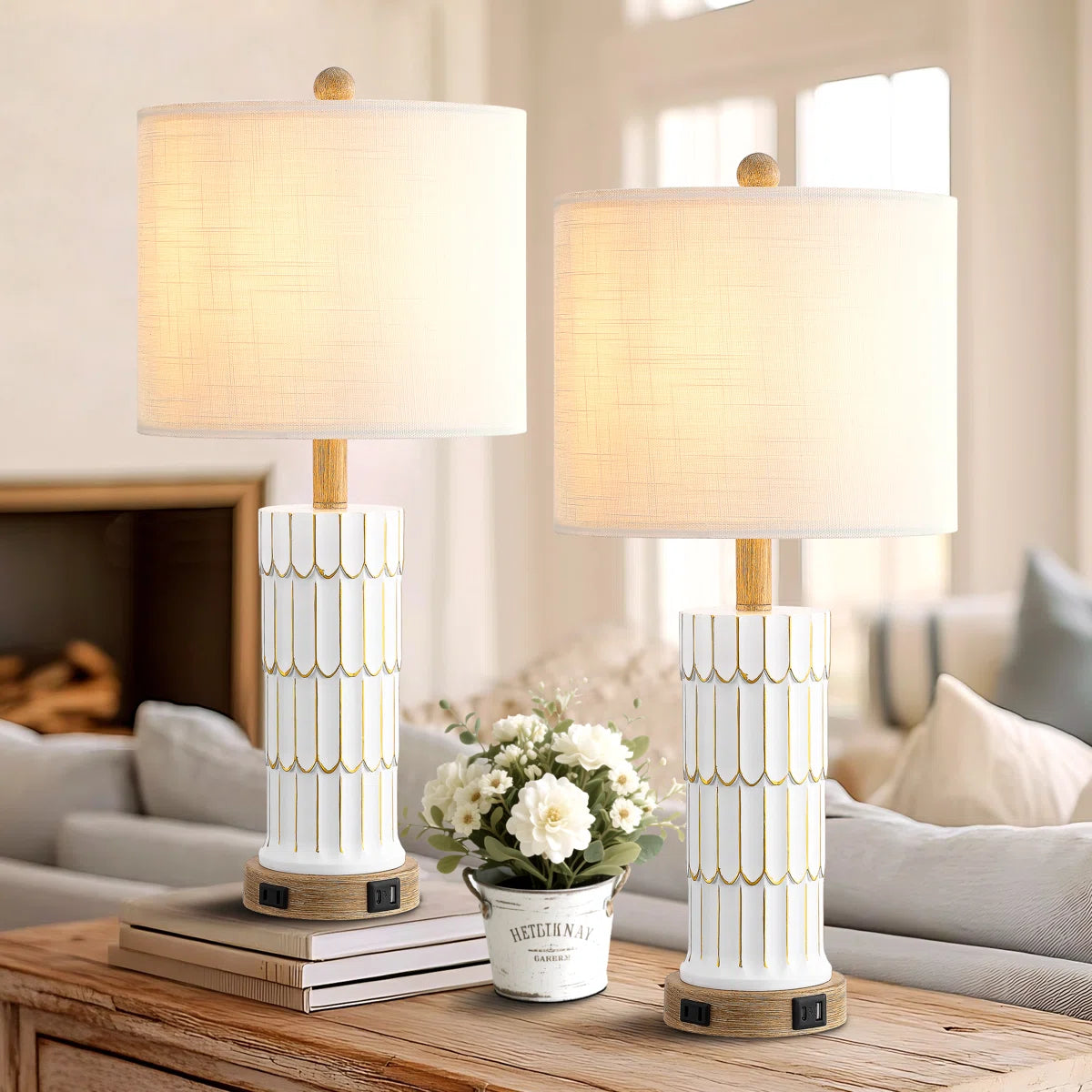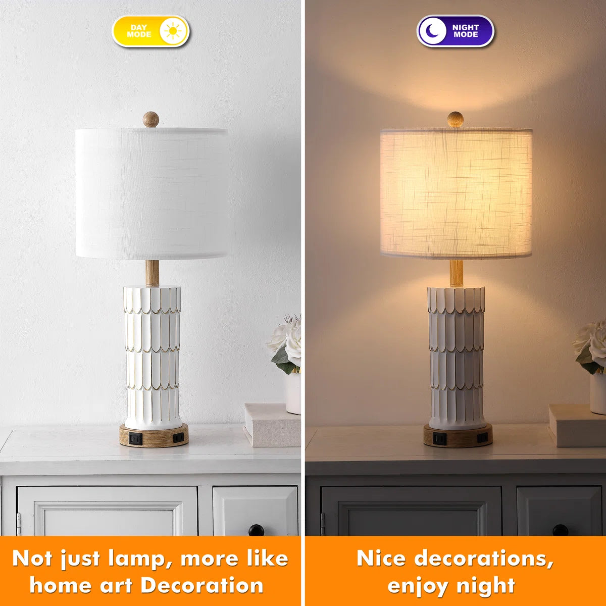 The farmhouse retro table lamps are made from antique-style beige-washed resin and come with linen fabric lampshades, featuring unique vintage textures that offer charmingly retro aesthetic appeal. The classic design of lamps brings an elegant and sophisticated feel to your home space, easily complementing various interior styles such as Nordic, simple, country, and minimalist. The farmhouse lamps are perfect for end tables, desks, sofas, and dressers.