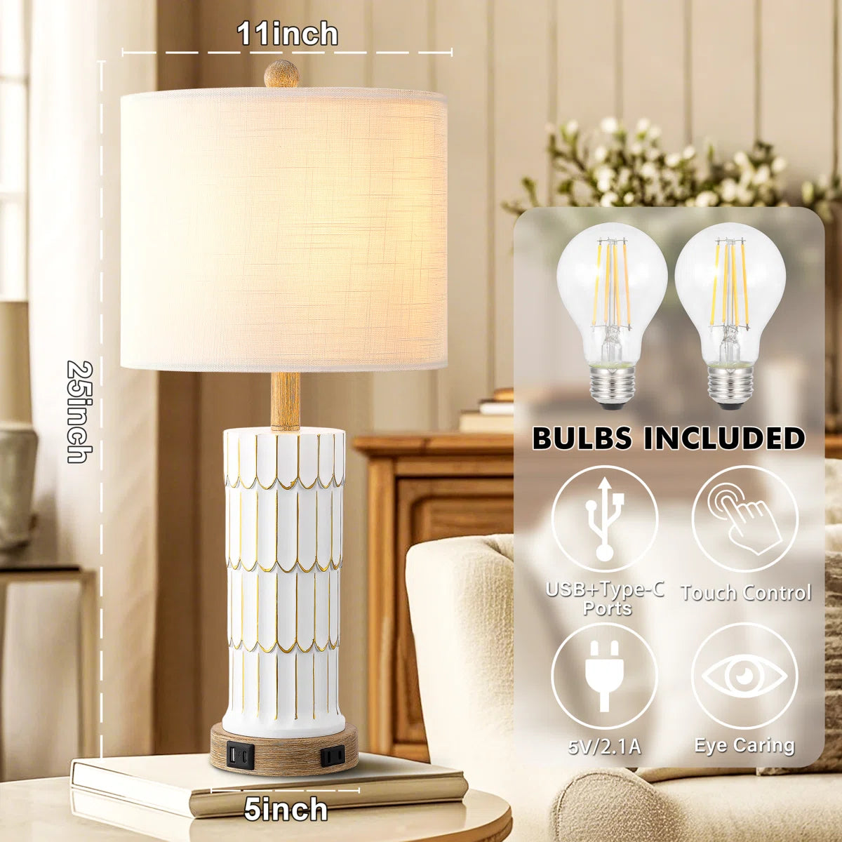 • Energy-saving LED bulbs & eye-friendly light: The rustic lamps have free 6W LED bulbs that give off a warm and cozy light, perfect for reading, studying, working, or relaxing. Two LED bulbs that provide a warm white light at 2700K and 800 lumens, without any flickering or buzzing. The linen fabric shade emits soothing and eye-friendly lighting. Farmhouse lamps not only provide safe and eye protection illumination but also bring a comfortable atmosphere to your home!