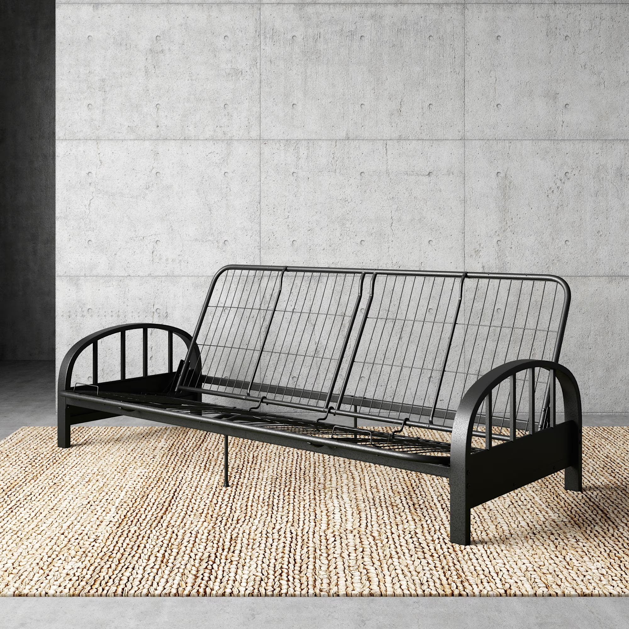 From a living room sofa to a bed for overnight guests or something fun and functional for your childs room, our Aiden futon frame is the perfect addition to any home that needs extra seating and sleeping space. Its small enough to fit into tight areas yet just the right size to be the centerpiece in any room! The mesh metal frame is solidly constructed to provide a sturdy place for your guests to sit. Then simply open it up to reveal a full-sized bed with ample space to sleep two.