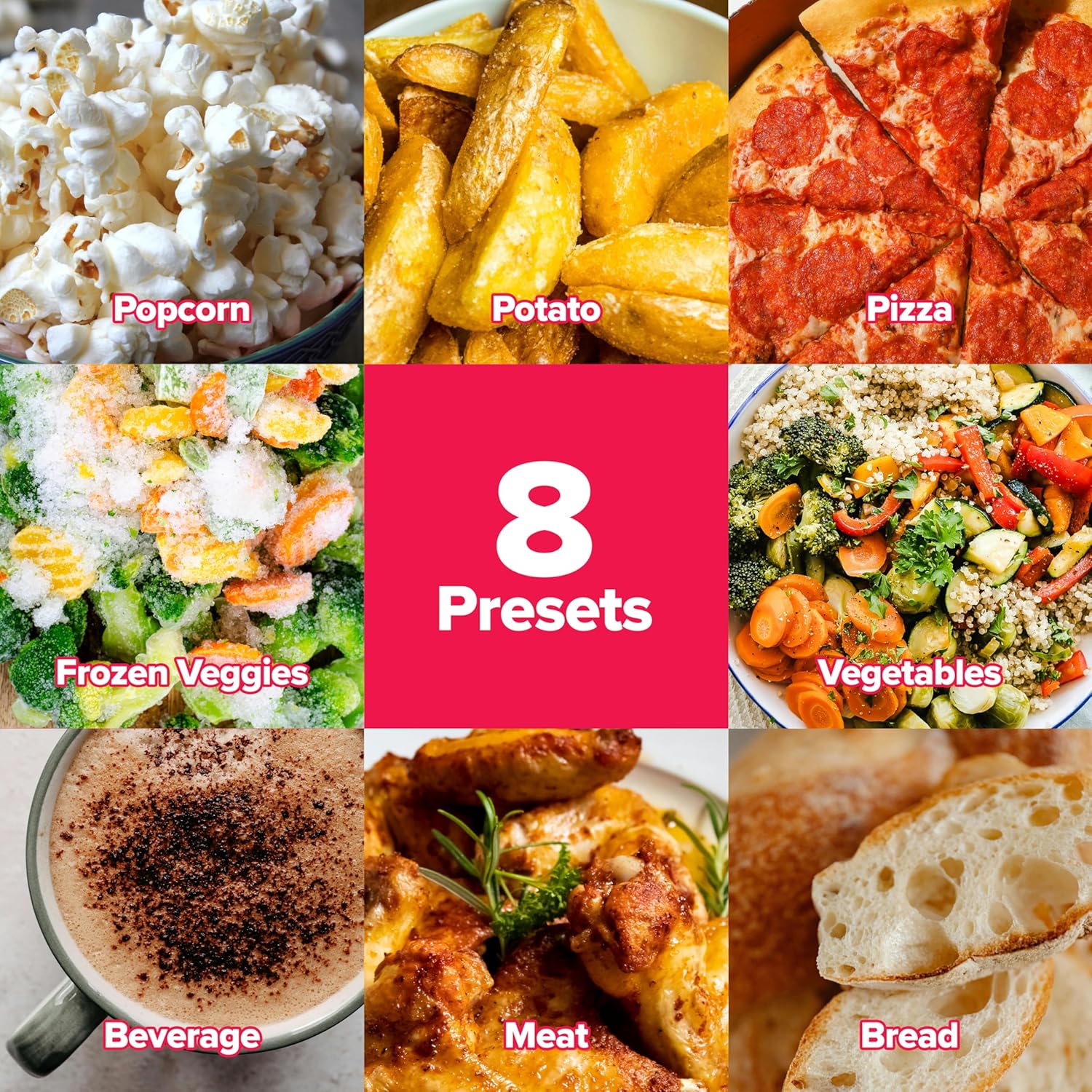 21" 1.1 cu.ft. Countertop Microwave by Products. With a 1.1-cubic-foot capacity, this stainless steel microwave oven allows for quick and convenient meal preparation. The unit's one-touch auto-cook menu takes the guesswork out of cooking popularly microwaved foods including popcorn, baked potatoes, pizza, beverages, and frozen dinners, while its reheat button makes it easy to warm food items back up again. The microwave's soft-touch electronic control panel also comes with cook-by-weight and defrost-by-weight options, speed defrost that alternates between defrost and stand times for efficient results, a start/stop button, and a reset button to clear all previous settings. With a sleek stainless steel finish, this microwave will look perfect in any kitchen, office or dorm.
