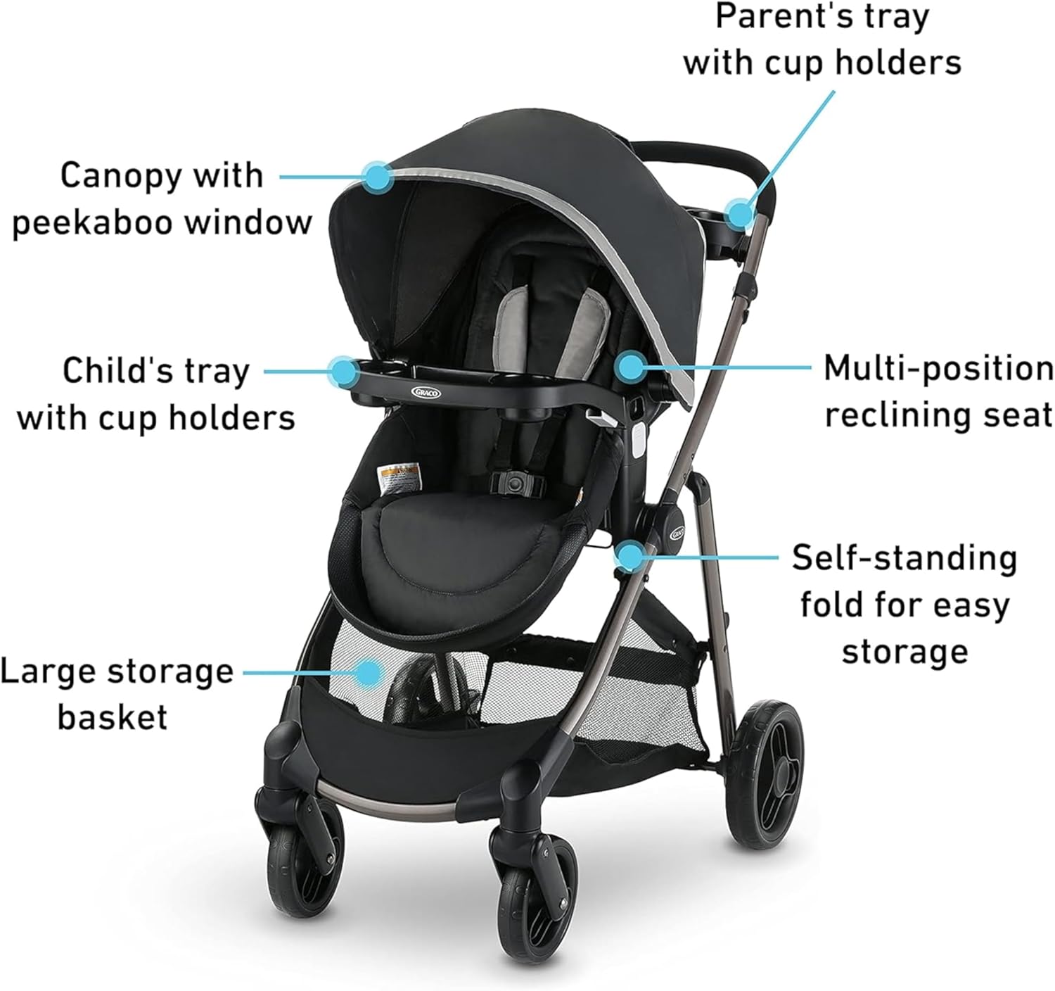 3 strollers in 1: Infant Car Seat Carrier, Infant Stroller, and Toddler Stroller to stroll from infant to toddler Reversible stroller seat can face parent or the world, for just the right ride as baby grows Includes the Graco SnugRide 35 Lite LX Infant Car Seat, rear-facing for infants from 4-35 lb and up to 32 for an easy transition from car to stroller Parent's tray with cup holders provides extra convenience on the go Child's tray with cup holders to store baby's essentials removes easily to help your child climb in and out of the stroller