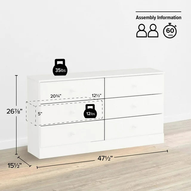 The Astrid 6-Drawer dresser has a contemporary design and clean lines that complements a variety of decors. Profiled drawer fronts and solid wood knobs help provide a timeless look. Use on its own or pair it with other matching pieces from the Astrid Collection. At 47.25” wide, this classic design gives you lots of room on top to showcase treasured items like jewelry boxes, lamps and photos.
