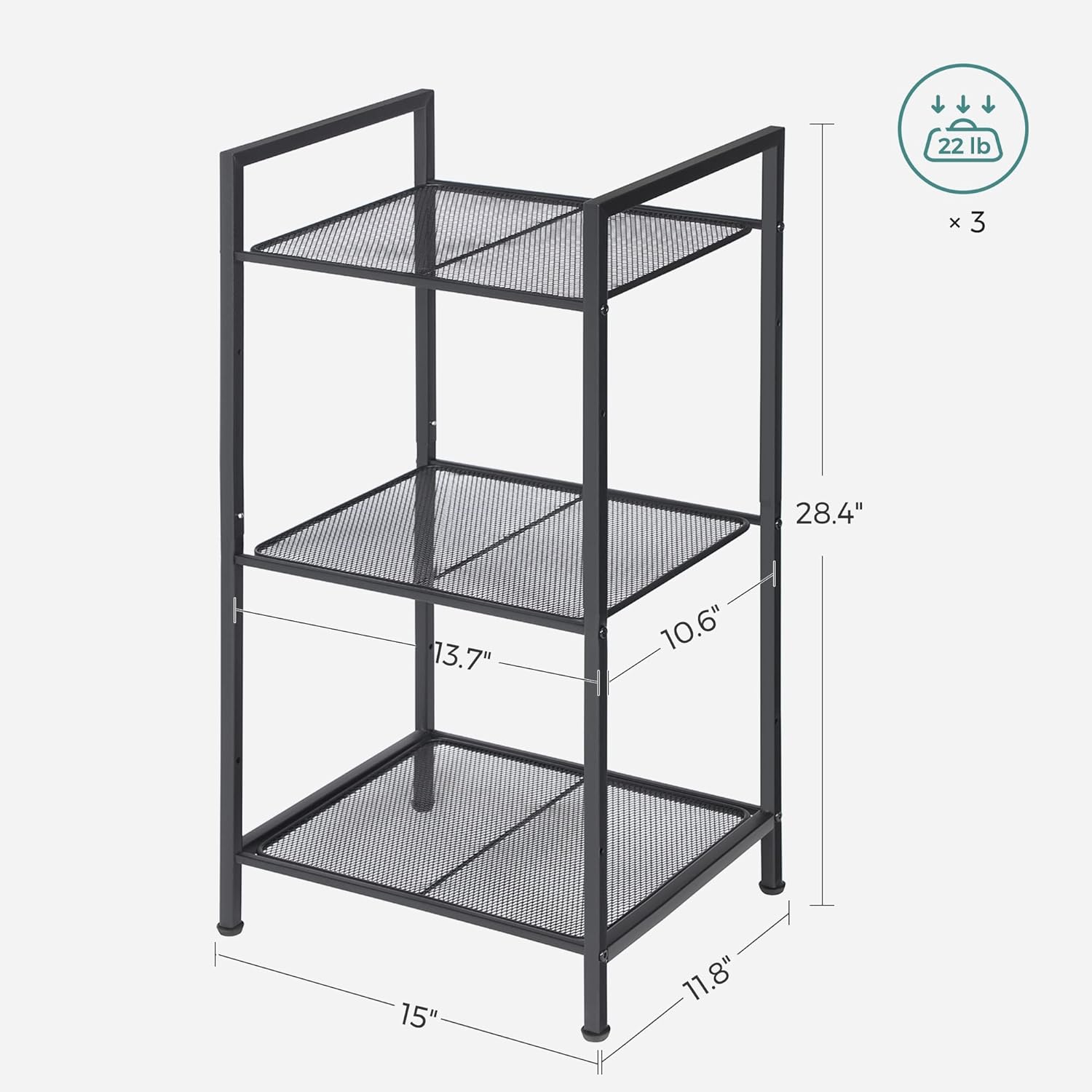 Steel Your Rack, Your Way With a customizable design, you can extend it infinitely with similar shelves at least until it reaches the limits of your walls; also, the shelf height is adjustable so your plants or decorations can all have a home here, big or small High-Quality, Our Way The strong metal frame used in this storage rack means extra strength and durability, ensuring a static load up to 22 lb per shelf. From your towels to your numbers of cleaning supplies, they ll sing songs of praise to this silent hero It's Only for the Bathroom? Nope. Create a secret garden on the balcony to unwind from worldly life, use it as a shelving unit in your living room to hold an art collection, or blend it in alongside your kitchen counters this all-rounder can always be in full play Assembly Finished! With SONGMICS, no unpleasant surprises! Easy-to-understand, illustrated instructions, assembly kit, and numbered parts make it easy to assemble this storage shelving unit. You might surprise yourself! Keep Stability in Mind We ve packed a stability trio into this 11.8 D x 15 W x 28.4 H storage shelf the strong steel frame, anti-tip kit, and adjustable feet ensure the storage cabinet is stable enough to hold a vase of fresh flowers safely