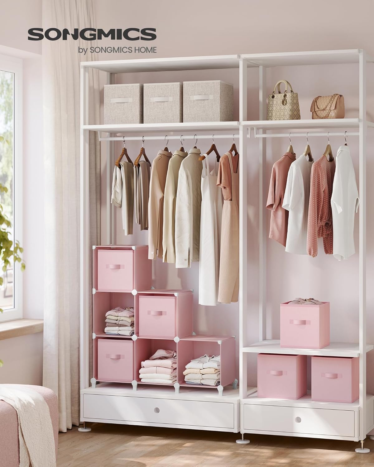 Title: SONGMICS Cube Storage Organizer with Storage Boxes, Set of 6-Cube Organizer, 6 Collapsible Non-Woven Fabric Bins, Customizable, Space-Saving, Bedroom, Jelly Pink ULPC062R01