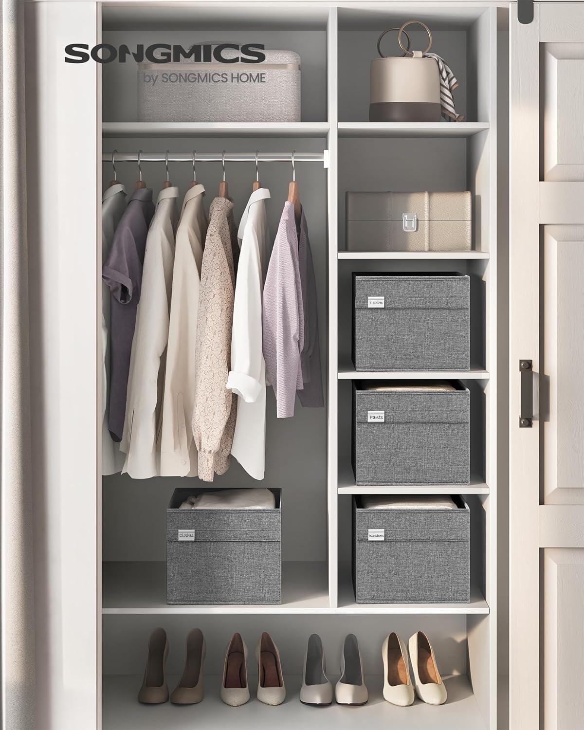 Title: SONGMICS Storage Baskets, Set of 4 Extra Large Storage Bins for Organizing, 30L, 15.7 x 11.8 x 9.8 Inches, Fabric Storage Cubes for Shelves, Easy to Clean, Foldable, 2 Handles, Dove Gray UROB240G04
