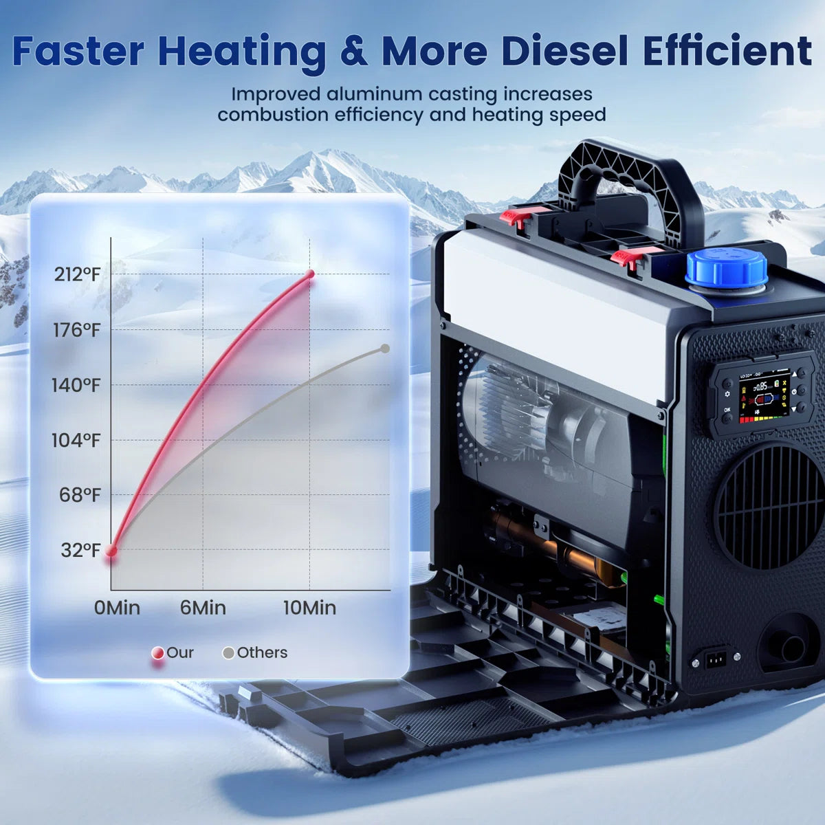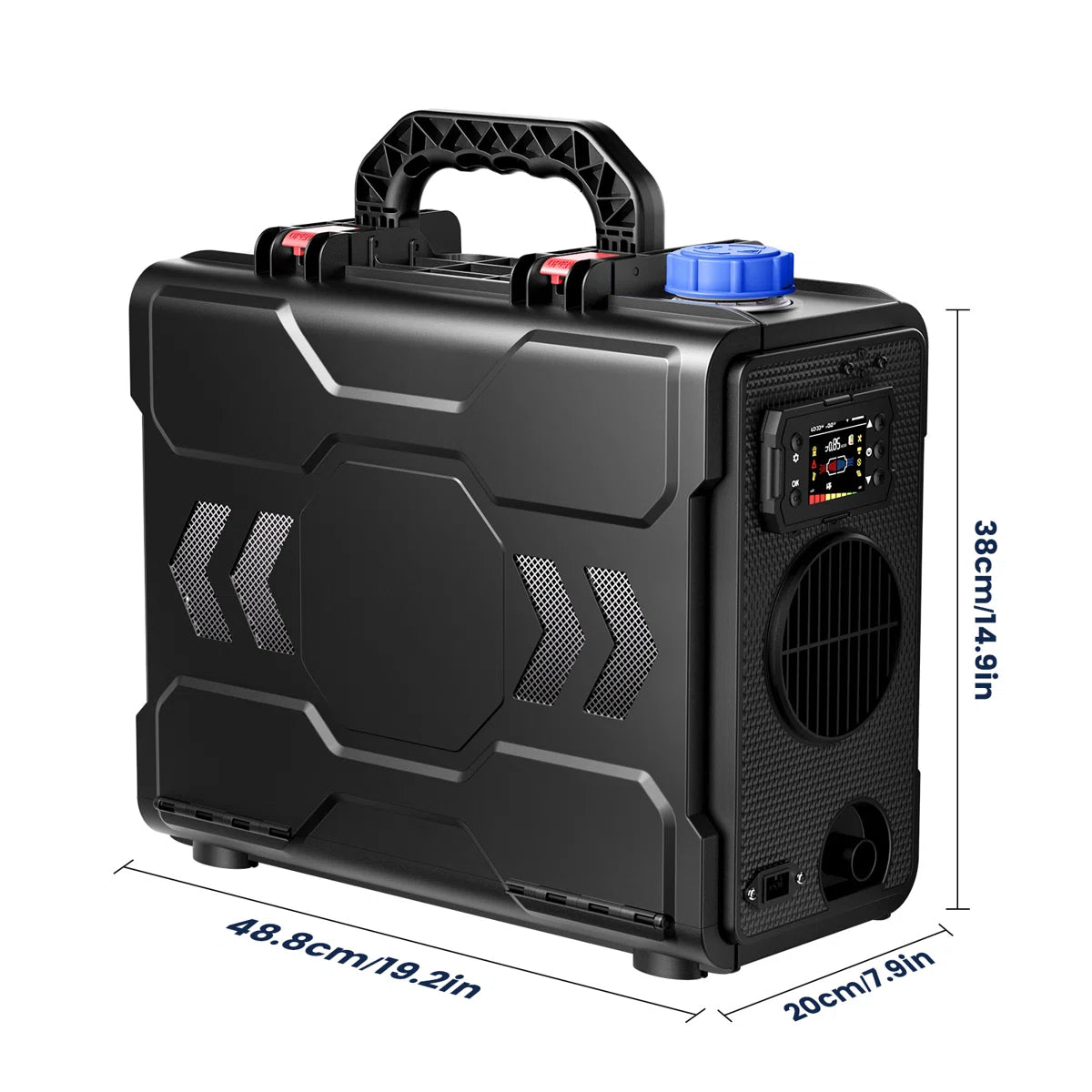 About This Product New model 2024,With bluetooth App,remote control display is fully upgraded and more convenient to use;Toolbox Series All in One Classic Series Diesel Heater are Hcalory's leading Series. What Hcalory strives for is to provide high quality, safer and more user-friendly products to our customers and improve their driving experience. And the warm air port is wider, which improves the air temperature 50~68°F and reduce exhaust gas temperature by 122~212°F, keeping you comfortable in even the coldest conditions. Features New Toolbox Design: The compact, toolbox-style heater comes with an integrated 6L fuel tank. All-in-one box with a built-in handle, this portable diesel heater is easy to transport, install, and maintain. Whether you’re using it for your RV, truck, or outdoor adventures, its compact design makes it convenient and hassle-free. Smart APP Control: Remotely control your heater with the Bluetooth app. Adjust temperatures, set timers, and activate altitude mode to ensure full combustion efficiency at higher elevations. Fast Heating Technology: The aluminum body is heavier and longer, and the warm air port is wider, which improves the air temperature 50~68°F and reduce exhaust gas temperature by 122~212°F, keeping you comfortable in even the coldest conditions. Dual Power Options: This versatile diesel air heater supports both 12V/24V DC and 110V AC power sources, making it suitable for a wide range of vehicles and locations, whether on the road or at home. Comprehensive Protection Features: Equipped with over-heating, short-circuit, reverse connection, and over-voltage protections, this portable diesel heater ensures safe, worry-free operation in any environment.