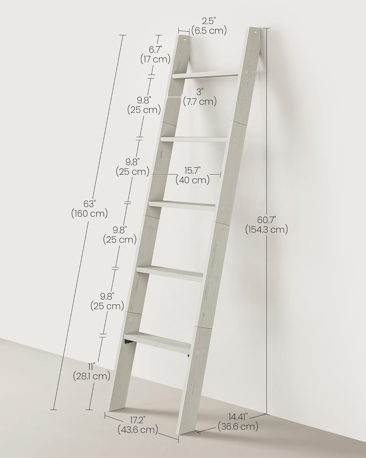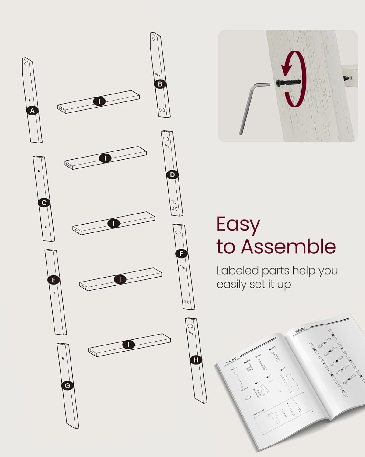 Title: VASAGLE Blanket Ladder Decorative Farmhouse for The Living Room, 5-Tier Ladder Shelf, Ladder Rack for Storage and Decor, Rustic White ULLS018W73
