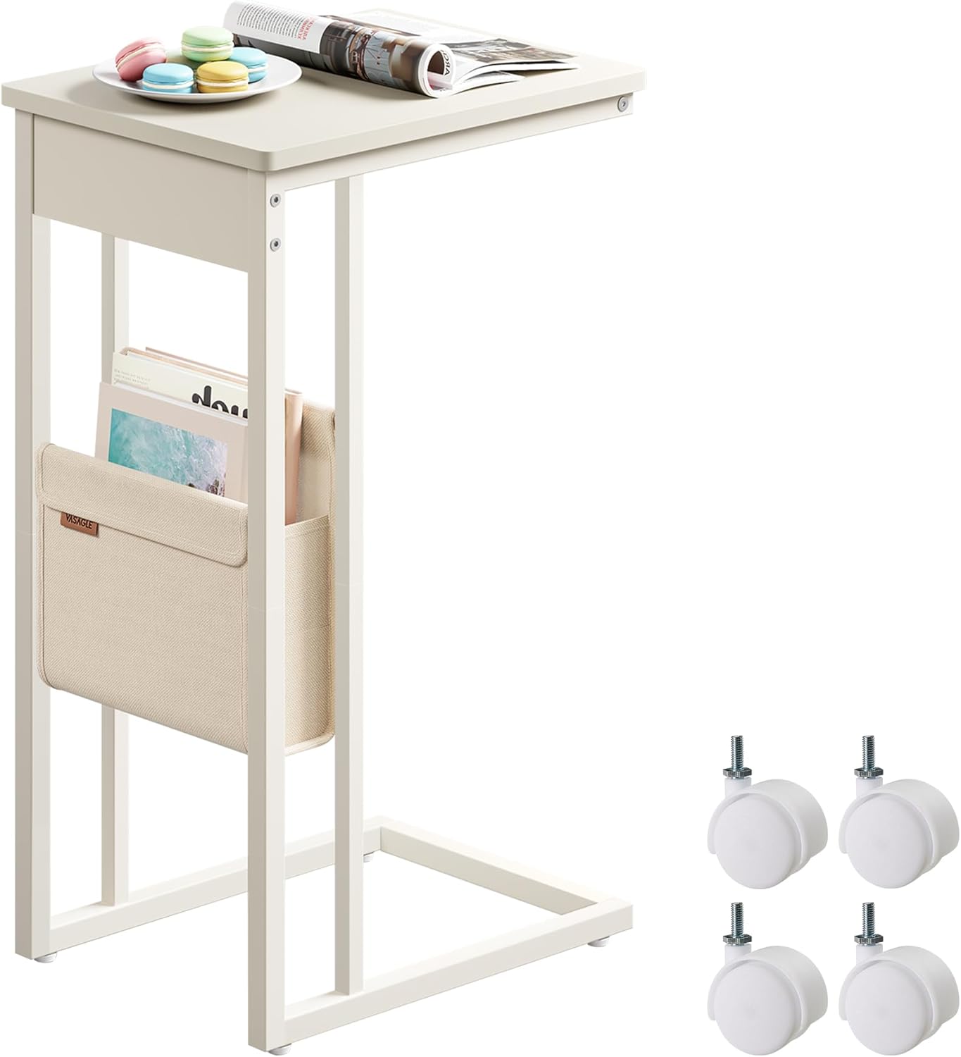 Title: VASAGLE C-Shaped Side Table, End Table with Wheels, C Table for Couch, Sofa, with Storage Bag, Adjustable Feet, for Bedroom, Living Room, Cream White ULET357W77