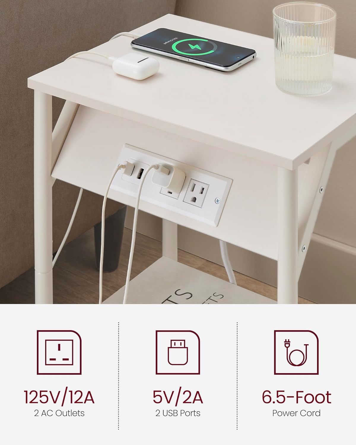 Title: VASAGLE End Table with Charging Station, Set of 2, Small Side Tables for Living Room, Bedroom, Nightstand with Outlets and USB Ports, Bedside Table with Storage Shelf, Cream White
