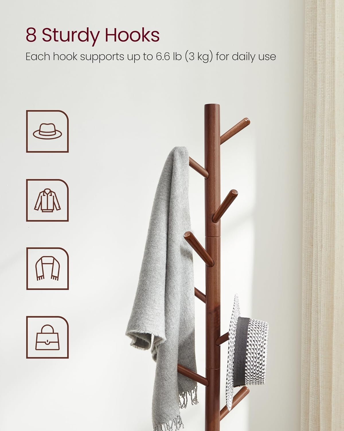Title: VASAGLE Solid Wood Coat Rack, Free Standing Tree-Shaped Coat Rack with 8 Hooks, 3 Height Options, for Clothes, Hats, Bags, Living Room, Bedroom, Home Office, Caramel Brown URCR04WN