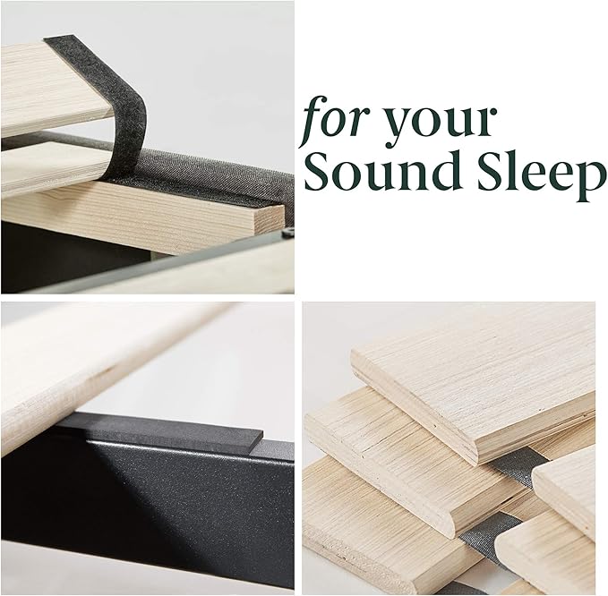 No box spring needed; durable wood slats support latex, memory foam, or spring mattresses without the extra bulk